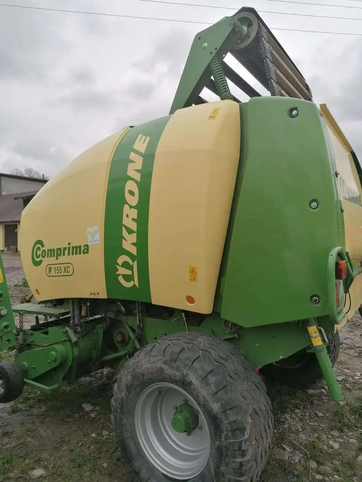 Prasa Krone Comprima f155xc -17 noży -zmienna komora prasowania ustawiana mechanicznie - prasa posiada dwuobwodowy układ hamulcowy - centralne smarowanie łańcuchów i centralki kalamitek do smarowania łożysk smarem. -wiązanie siatką, -opuszczana hydraulicznie podłoga z nożami.-ogumienie 500/55/-20w zeszłym roku wymienione: pasy prowadzace na nowe wszystkie rolki prowadzące pasy i łozyska. łańcuchy napedowe palce podbieracza cześciowo wymienione aktualnie wymieniamy łańcuchy napewowe podbieracza i ślimaków.