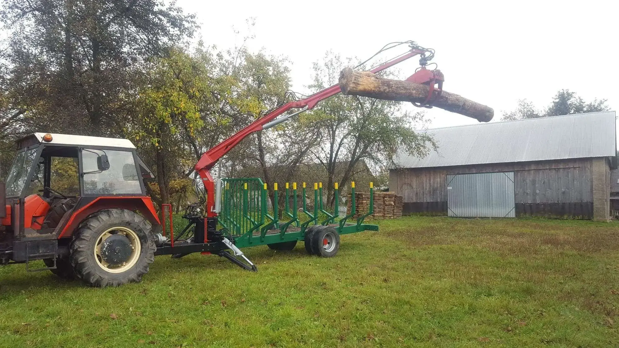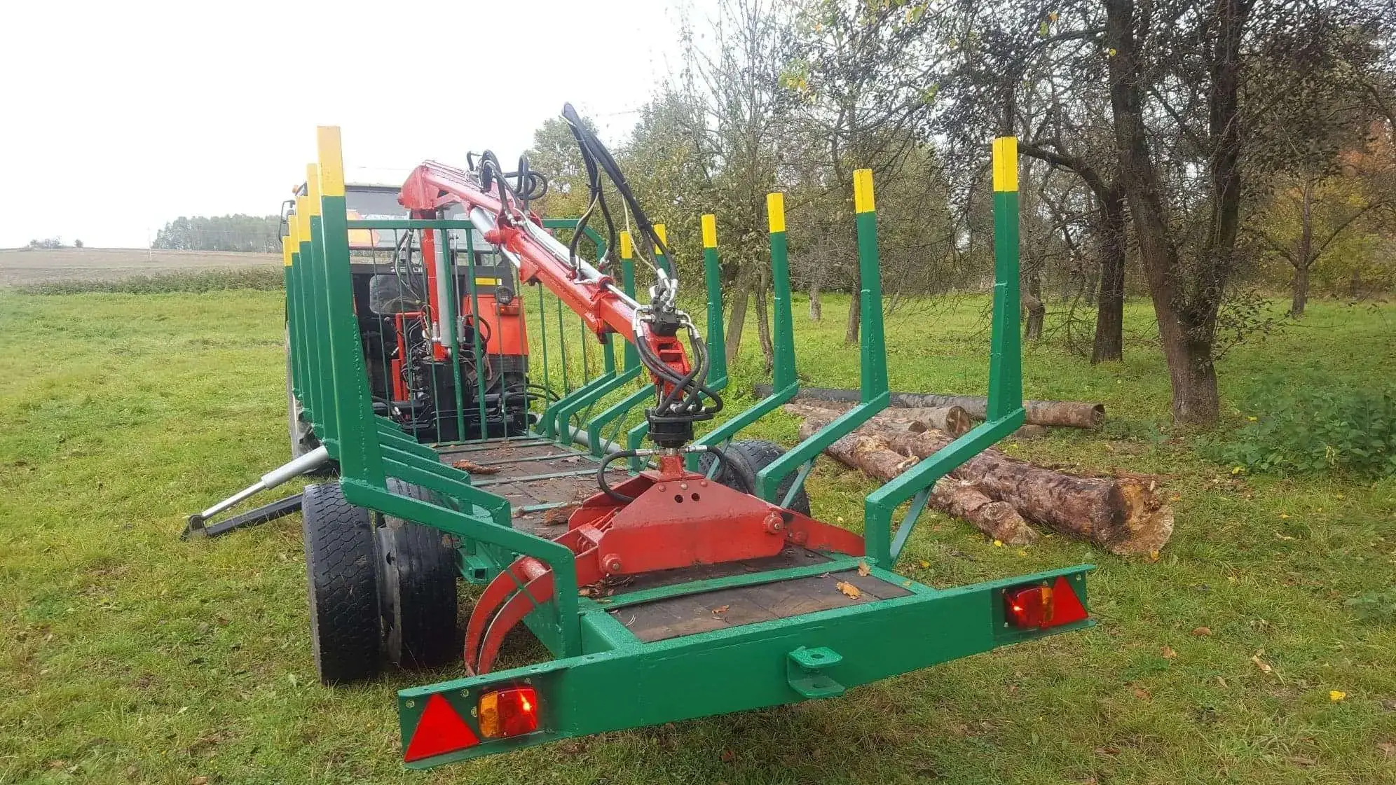 Przedmiotem sprzedaży jest przyczepa leśna:- ładowność 8 ton,- 6 par kłonic, które umożliwiają załadunek drewna opałowego na 3rzędy,- rozdzielacz pięciosekcyjny plus 2 elektrozawory, jeden do obrotuchwytaka, natomiast drugi do wysuwania ramienia,- wbudowana podłoga, która umożliwia poruszanie podczaspoprawek,- koła 17,5 bezdętkoweWięcej informacji udzielę telefonicznie, nie odpowiadam na sms-y.