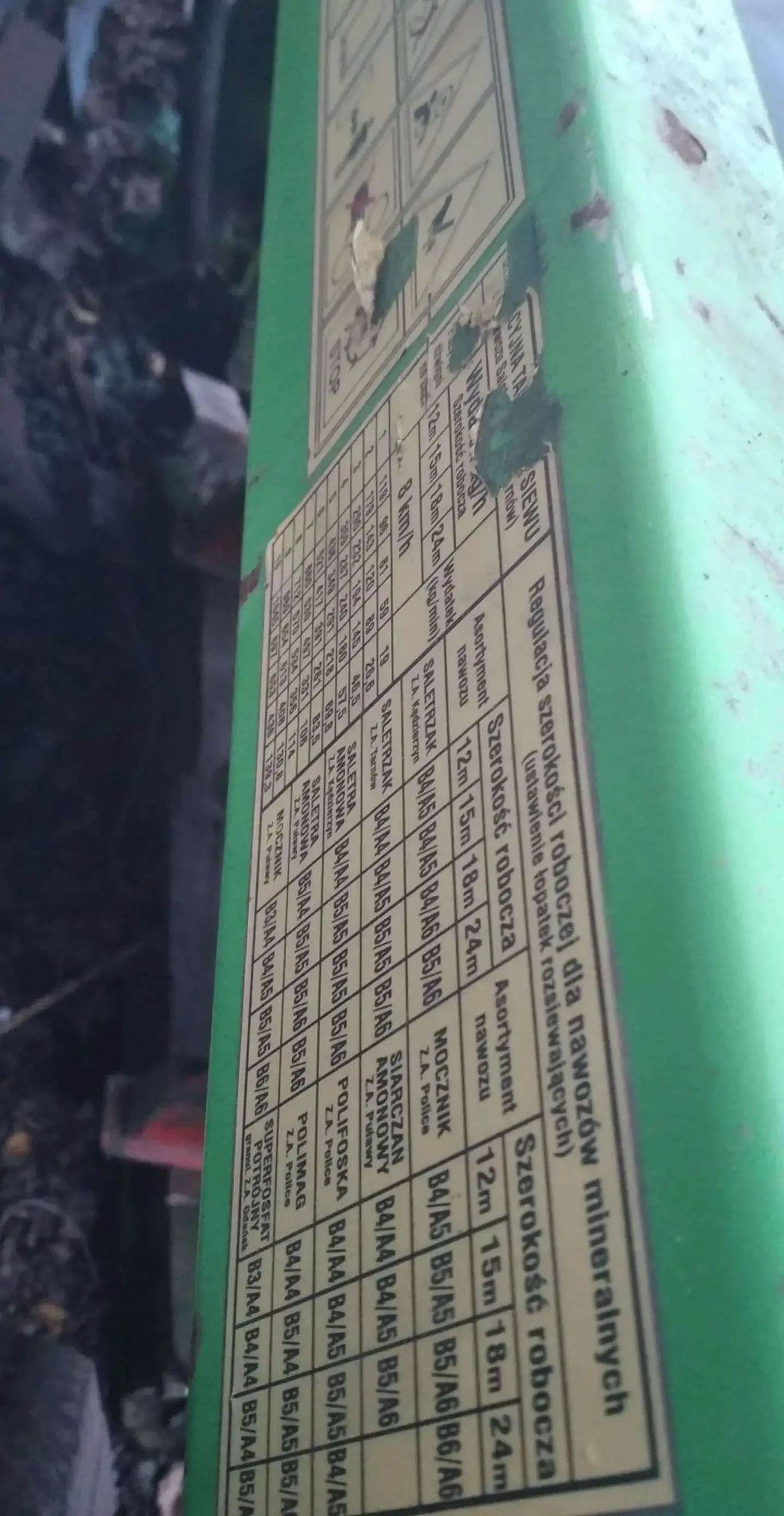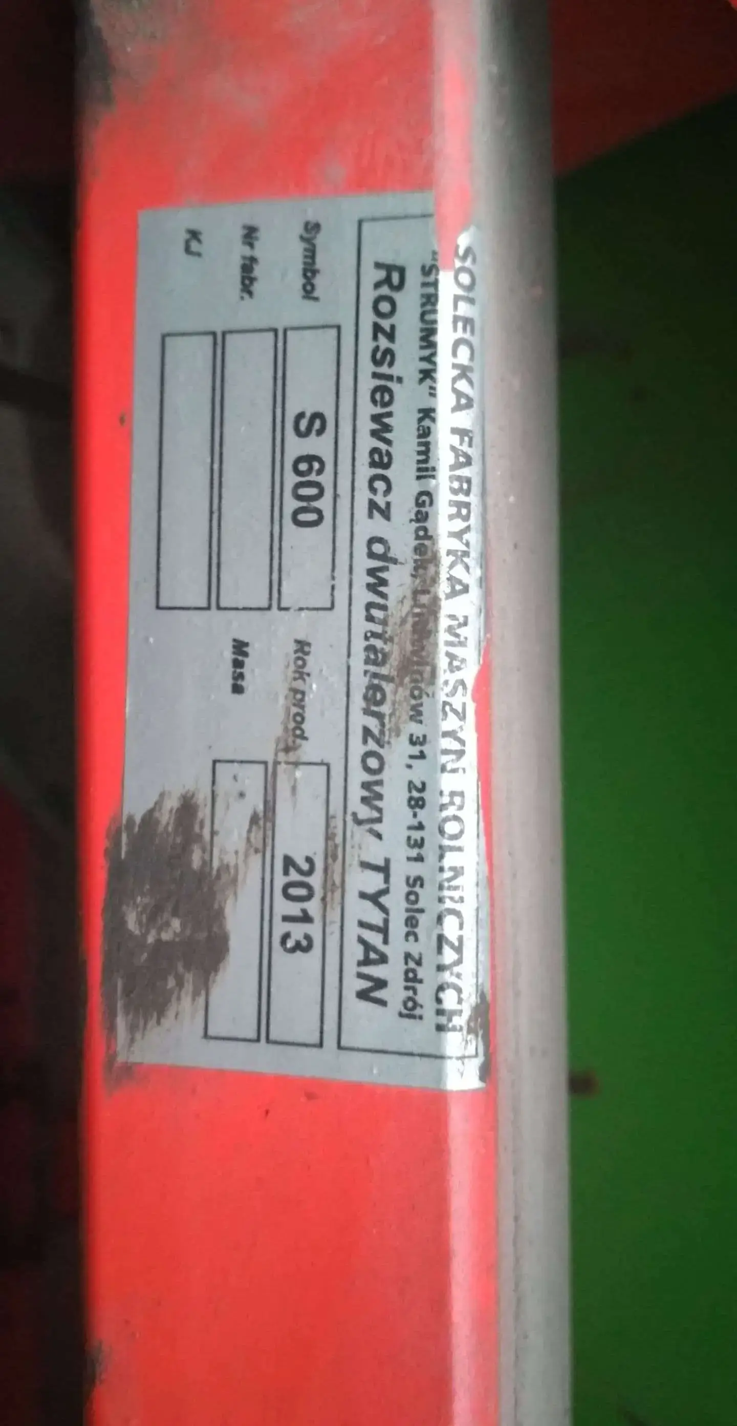 Rozsiewacz nawozu STRUMYK TYTAN 600LWypozażenie:Otwieranie hydrauliczne zsypówsito w zbiorniku600l pojemnościszerokość wysiewu od 12m do 24mSzeroka dawka regulacjiTabela wysiewu2 talerze wysiewająceręczne otwieraniePrzekładnia 540 obrotówRok produkcji 2013Maszyna w ciągłym użytkuPrzekładnia bez sprzęgłowaPracuje bez zastrzeżeń2 Rozbijaki w środku