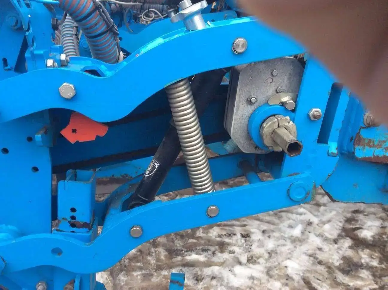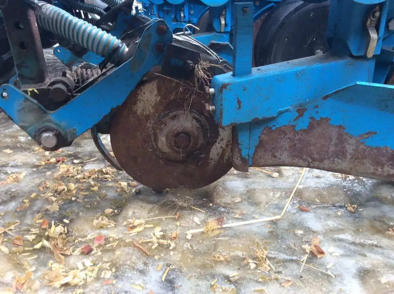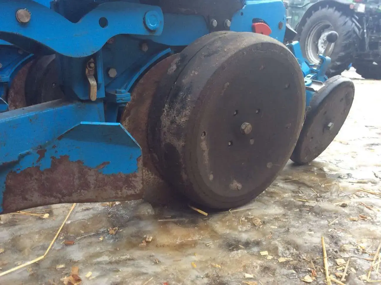 - 6 talerzowych sekcji wysiewających NG Plus 4 MONOSHOX: ze zbiornikiem na ziarno 52 l, tylnym zespołem kół w kształcie litery "V", z szybko wymienialnym czubkiem redliczki wysiewającej,
