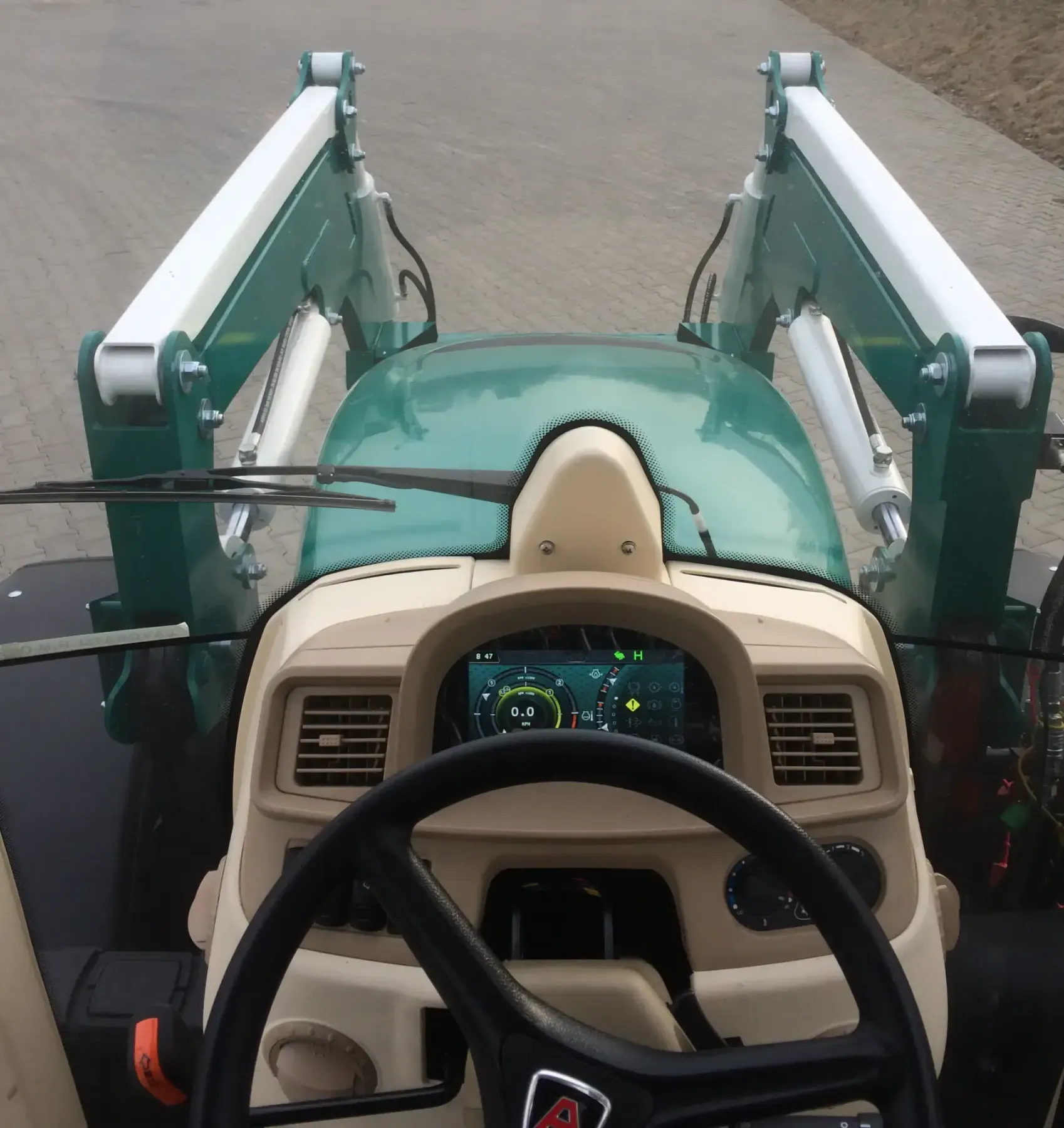 Przeszklenie kabiny kwalifikuje ją zdecydowanie do klasy ciągników przystosowanych do pracy z ładowaczem czołowym oraz bardzo wieloma maszynami towarzyszącymi