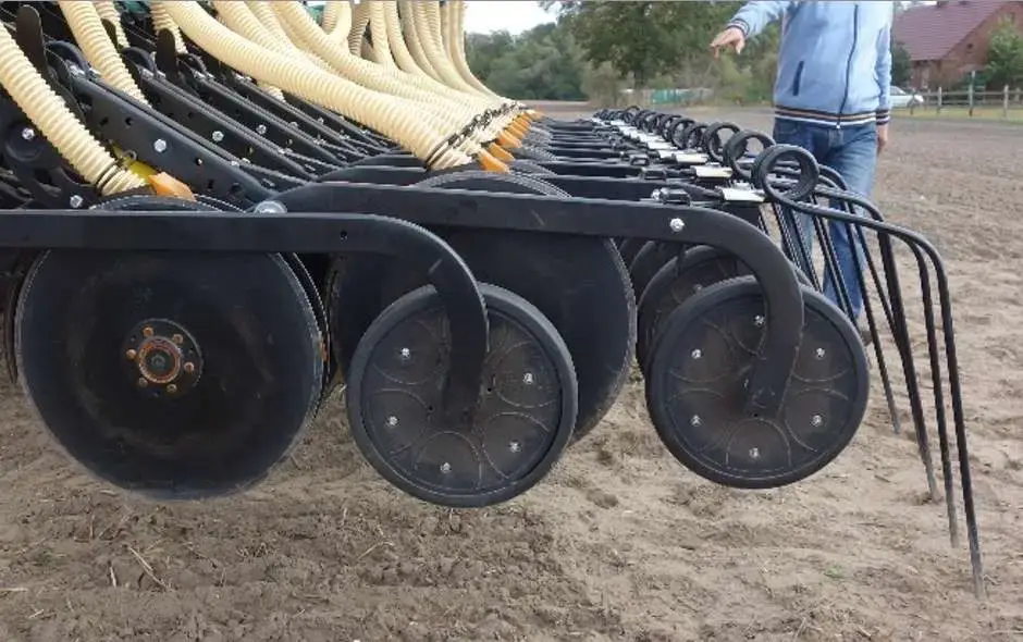 Dozownik z napędem elektrycznym, wydajna turbina zapewniająca odpowiedni strumień powietrza transportującego materiał siewny oraz praktyczna konstrukcja sekcji wysiewających z redlicami talerzowymi, oraz kółkiem ugniatającym sprawiają, że siewnik może siać bardzo szybko i dokładnie.