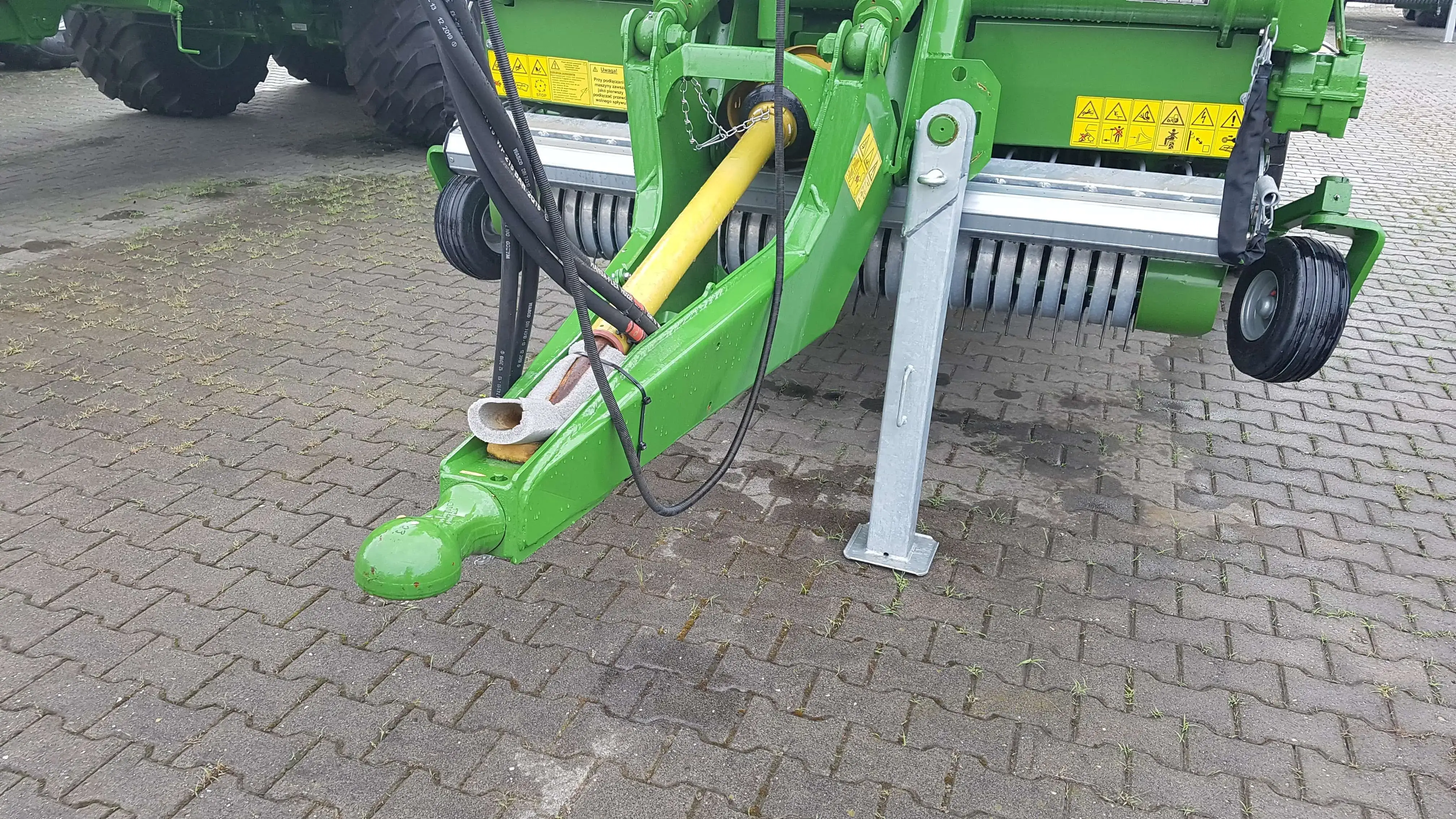 - Hydrauliczna regulacja wysokości dyszla oraz upuszczanie nożyKażda przyczepa samozbierająca Bergmann, posiada opuszczanie hydrauliczne skrzyni nożowej oraz regulację hydrauliczną dyszla.