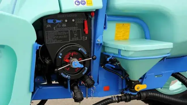 Wybór funkcji opryskiwacza dobywa się poprzez zmianę ustawienia dźwigni zaworów. Panel obsługowy jest czytelny i praktyczny. Wystarczy przestawić dźwignię na pożądaną funkcję (np. oprysk, mycie, płukanie...) oznaczoną danym numerem. Stanowisko obsługowe jest wyposażone tylko w trzy zawory, które sterują wszystkimi 16 funkcjami opryskiwacza: