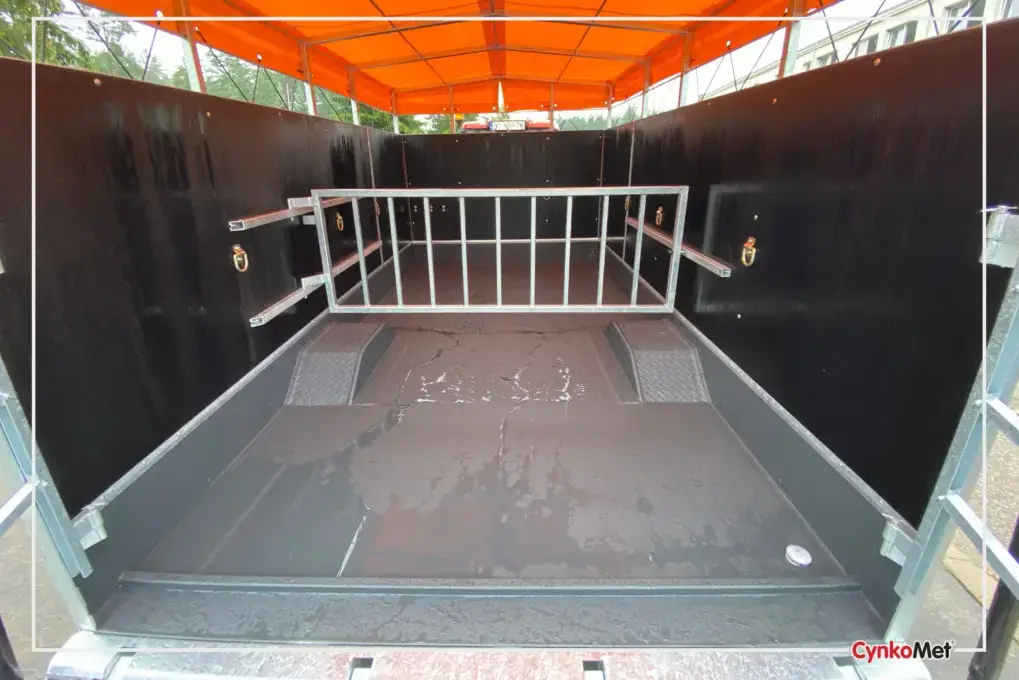 - Możliwość wyposażenia w podłogę drewnianą impregnowaną, aluminiową ryflowaną, stalową cynkowaną lub pokrytą antypoślizgową masą.