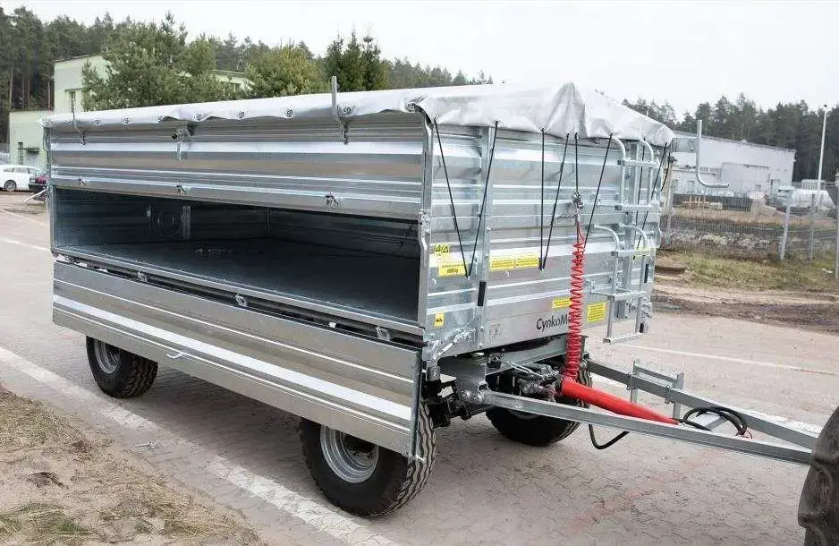 Nowoczesna przyczepa rolnicza dwuosiowa z trójstronnym wywrotem skrzyni ładunkowej do tyłu i na boki. Przeznaczona jest do transportu płodów rolnych oraz wszelkich materiałów sypkich i objętościowych. Otwór wysypowy w ścianie tylnej pozwala na wyładunek strumieniowy materiałów sypkich. Trapezowy kształt platformy skrzyni ładunkowej pozwala na szybki wysyp przewożonych materiałów bez oporów i klinowania się. Wyróżnia się możliwością otwierania ścian i nadstaw na różne sposoby. Zastosowano prosty system otwierana bort pojedynczo lub zespołowo do góry, lub do dołu, umożliwiający wywrót w trzech kierunkach. Wysoka szczelność skrzyni umożliwia transport wszystkich rodzajów zboża oraz innych materiałów sypkich. Sztywna rama wykonana z wysokogatunkowej stali, profili hutniczych, ściany wykonane z solidnych walcowanych profili, markowe podzespoły, nowe ogumienie oraz możliwość założenia dodatkowych nadstaw ze stelażem i plandeką gwarantuje bezpieczne i komfortowe użytkowanie. Homologacja umożliwia rejestrację przyczepy i poruszanie się po drogach publicznych. Dostępna jest w wersji 4 i 6 tonowej.