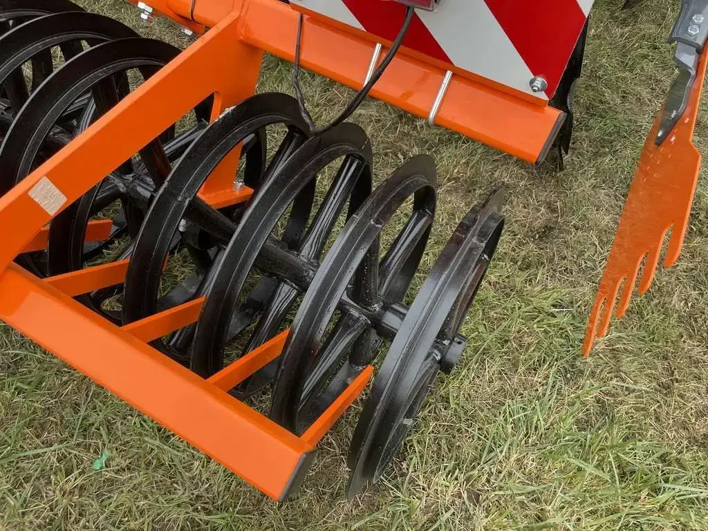 Talerze zagarniające o średnicy 465 mm osadzone są w piastach wyposażone w bezobsługowe łożyska. Klient ma duży zakres regulacji głębokości tych talerzy.