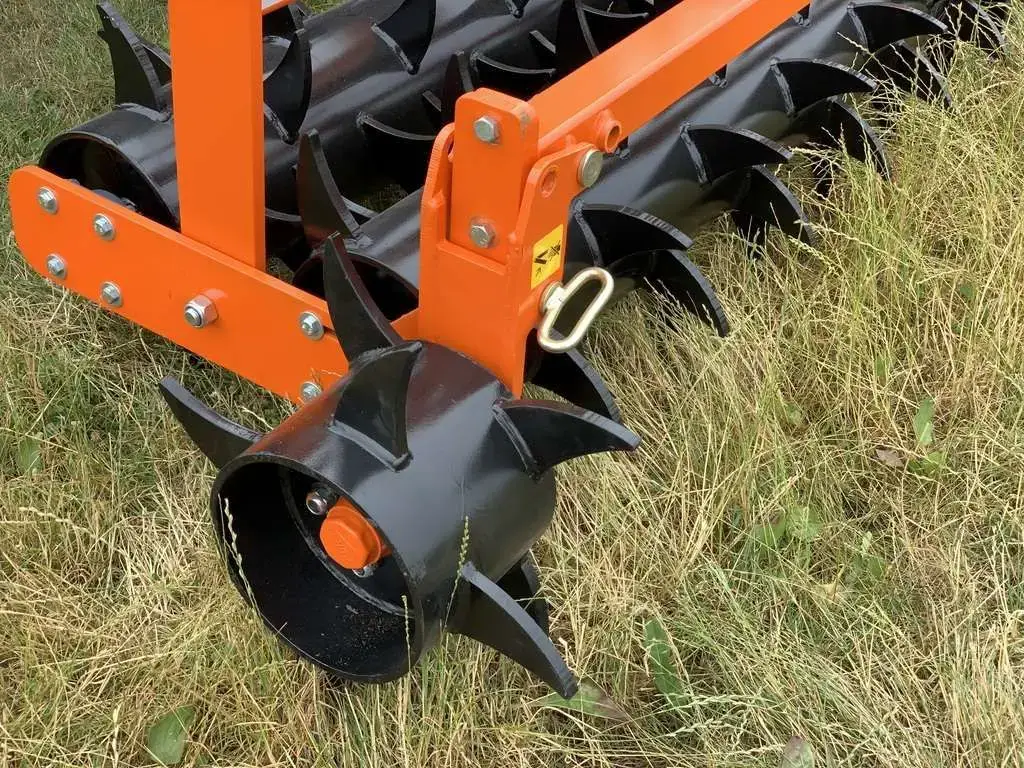 - Wały boczne zębateDociskają glebę „wyrzuconą” poza maszynę przez skrajne zespoły robocze, dzięki czemu zapobiegają powstawaniu kopców po przejeździe.