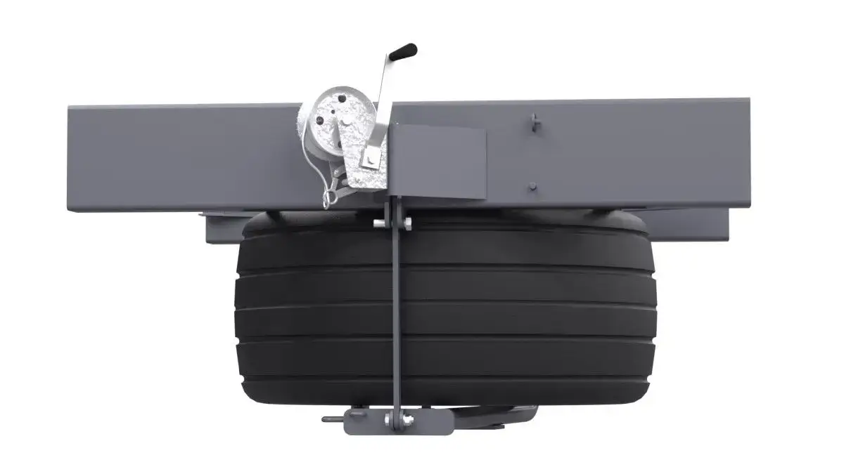 - Koło zapasowe z koszem i wciągarkąKoło zapasowe wraz z koszem i wciągarką umożliwia transport koła zapasowego bez ingerencji w przestrzeń ładunkową maszyny, ponieważ znajduje się pod konstrukcją ramy.