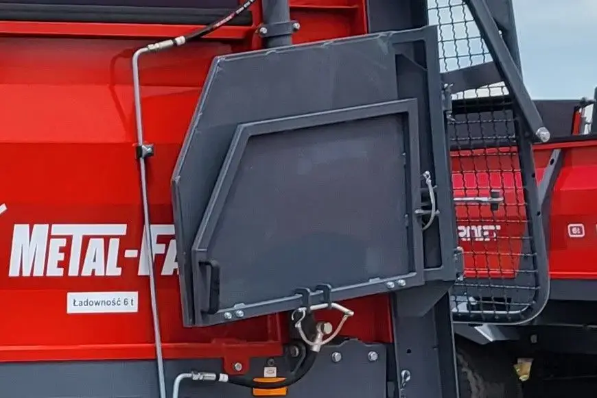 - Deflektory kierunku rozrzutuMechaniczne deflektory kierunku rozrzutu obornika, kompostu, pomiotu kurzego w rozrzutniku obornika N267 Hornet firmy Melat-Fach. Stosuje się je przy pracy na skraju pola, by ograniczyć szerokość rozrzutu materiału.