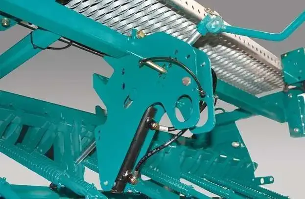 - Docisk hydrauliczny sekcji wysiewającychDocisk hydrauliczny sekcji wysiewających eliminuje konieczność stosowania korby na siewniku celem ustawienia siły docisku sekcji wysiewających. Podzespół posiada 2 pozycje regulacji: odciążającą i zwiększającą docisk sekcji wysiewających.