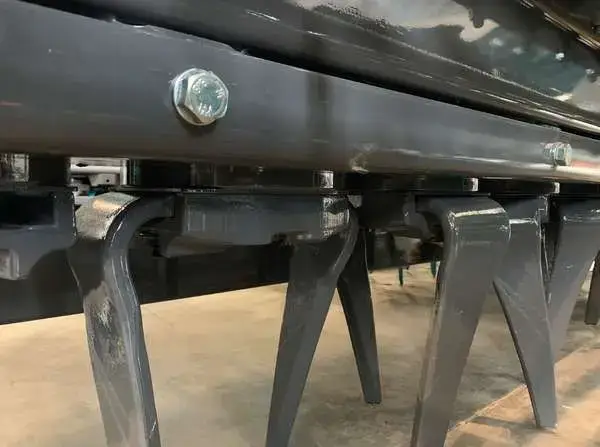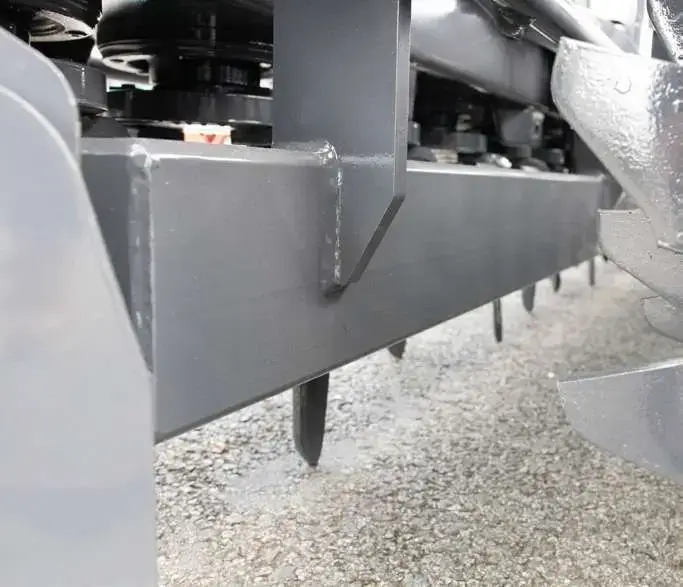 - Listwa zabezpieczająca przed kamieniamiListwa zabezpieczająca przed kamieniami może być opcjonalnie zamontowana na bronie wirnikowej. Dzięki temu unika się dostawania małych kamieni między obudowę a wirniki brony wirnikowej.