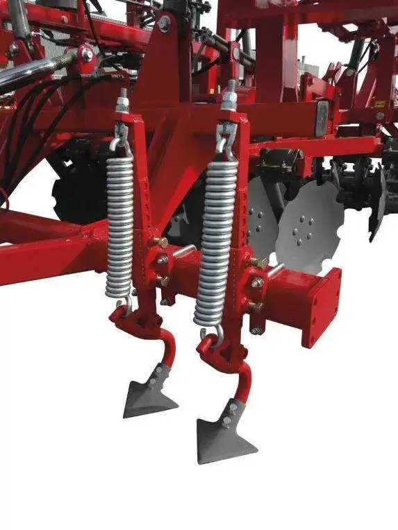 Sprężynowa włóka przednia z hydrauliczną regulacją głębokości pracy to idealny komponent wyrównujący teren bezpośrednio przed agregatem co wpływa na stabilność jego pracy oraz już na samym początku wstępnie rozbija większe bryły ziemi.