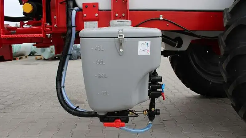 - Rozwadniacz eżektorowyOpcjonalny rozwadniacz eżektorowy o pojemności 45 litrów do rozwadniania aplikacji środków ochrony roślin, wyposażony w dwie dysze zapewniające dokładne spłukanie środka roboczego ze ścianek pojemnika, a także dyszę do spłukiwania opakowań.