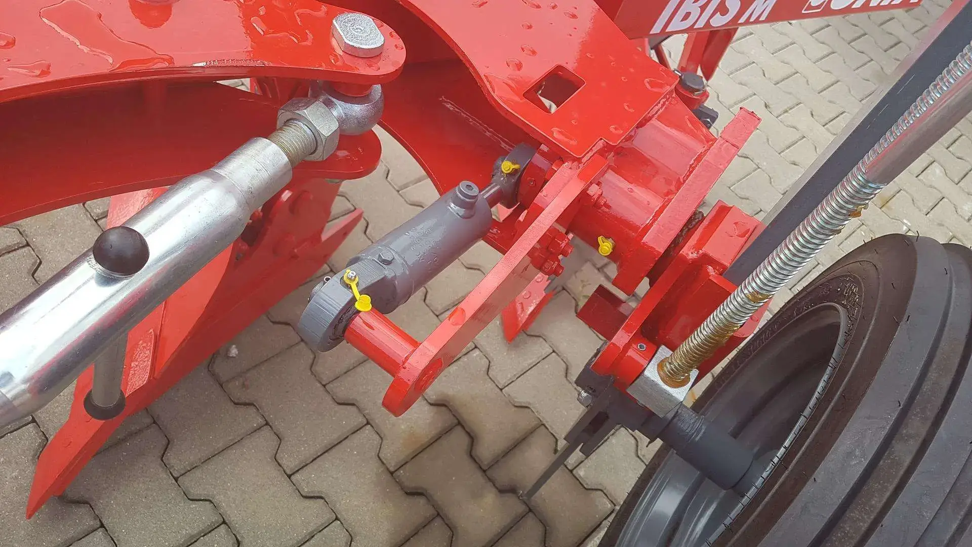- Pług Ibis koło podporowe amortyzowaneKażdy pług Unii Ibis XMS posiada w wyposażeniu standardowym koło podporowe z amortyzacją hydrauliczną obrotu.