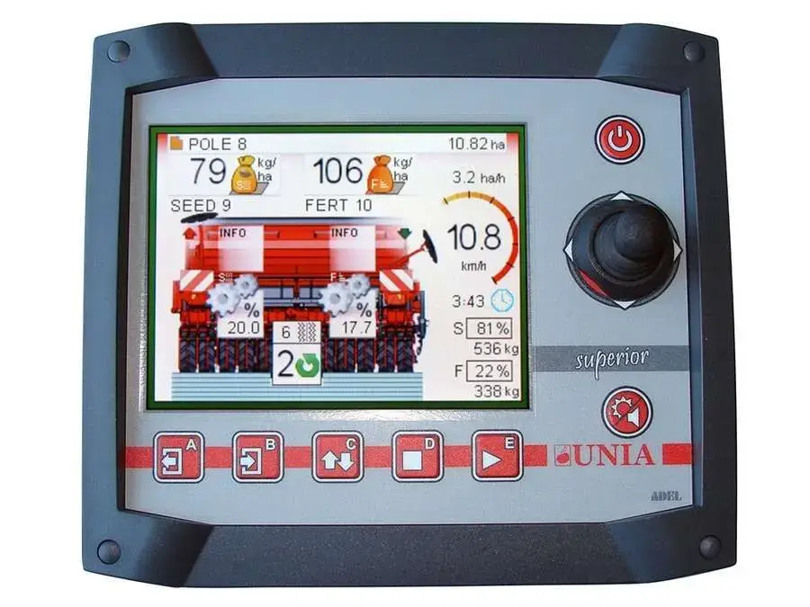 - komputer SUPERIOR (nadanie nazw polom, nadanie nazw wysiewanym nasionom, bieżąca kontrola dawki siewu, elektroniczna kontrola próby kręconej, elektroniczna kontrola siewu, ilość nasion w zbiorniku, planowanie ścieżek technologicznych