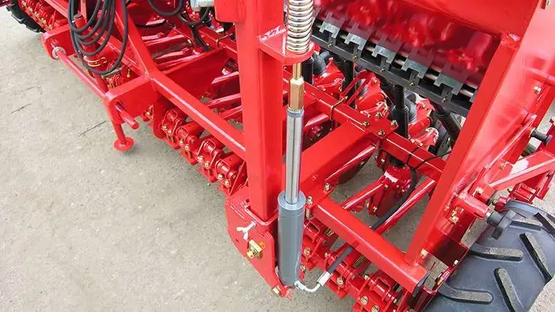 - Spulchniacze śladów kółOpcjonalne spulchniacze śladów przejazdowych ciągnika spulchniają glebę po przejeździe ciągnika, dzięki czemu ziarno na całej szerokości siewnika położone jest na jednakowej głębokości.