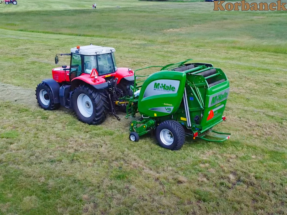 Prasowanie ciagnikiem Massey Ferguson i balociarą McHale V6 750
