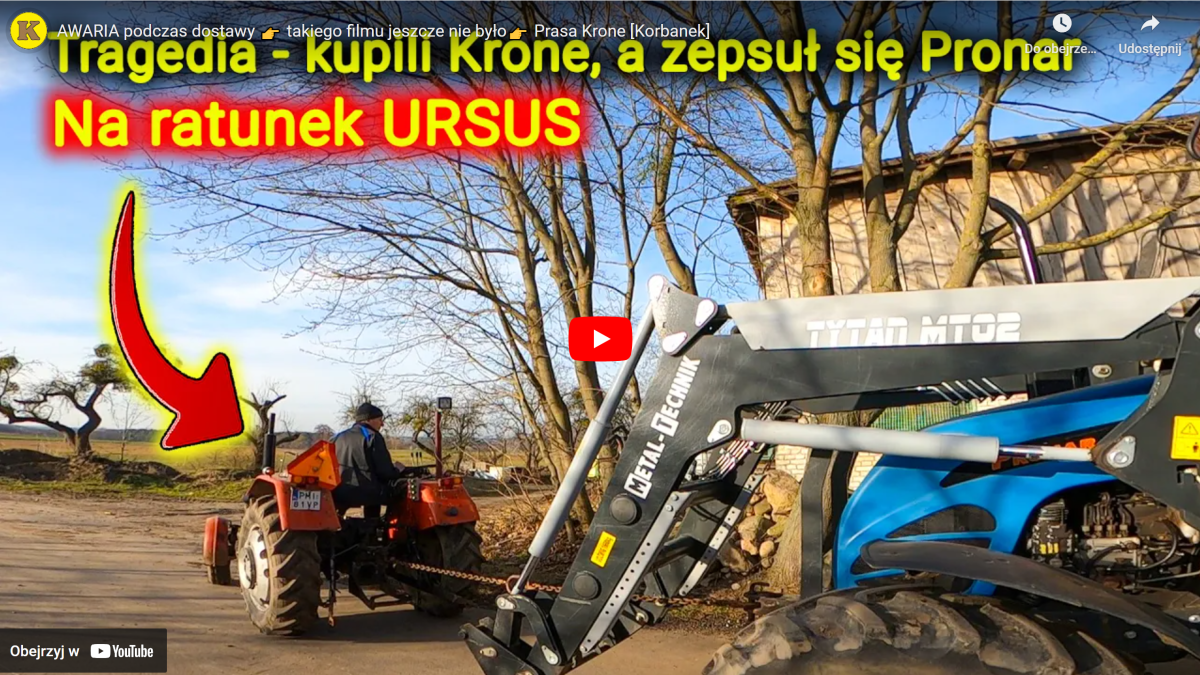 Podczas rozładunku doszło do awarii w ciągniku Pronar. Gdy ciągnik zjechał z lawety, przestała działać dźwignia zmiany biegów co uniemożliwiło zjazd ciągnikiem z drogi na gospodarstwo. Na ratunek w tej sytuacji przyjechał niezawodny Ursus C330, który również pracuje w gospodarstwie Pana Leonarda.