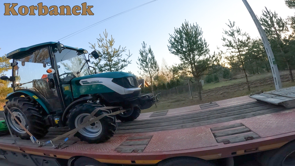 Ciągnik Arbos 2025 wraz z kosiarką polskiej firmy Talex podczas dostawy do Klienta