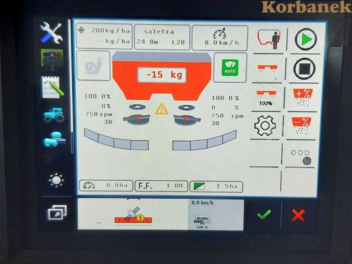 W ten sposób automatycznie zmieniana jest szerokość robocza niezależnie po obu stronach maszyny. Funkcja SectionControl działa z wykorzystaniem nawigacji GPS. W tym celu niezbędna jest mapa zawierająca obrys pola, która musi być wpisana do pamięci terminala. Ustawienia maszyny, które również bezprzewodowo można wprowadzić do terminala ISOBUS rolnik może dokonać w dowolnym czasie, wykorzystując w tym celu wgrywaną na smartfon lub tablet aplikację Spreader Smart Set. Po wpisaniu specyfikacji nawozu i schematu rozsiewu aplikacja ustala konfigurację rozsiewacza.