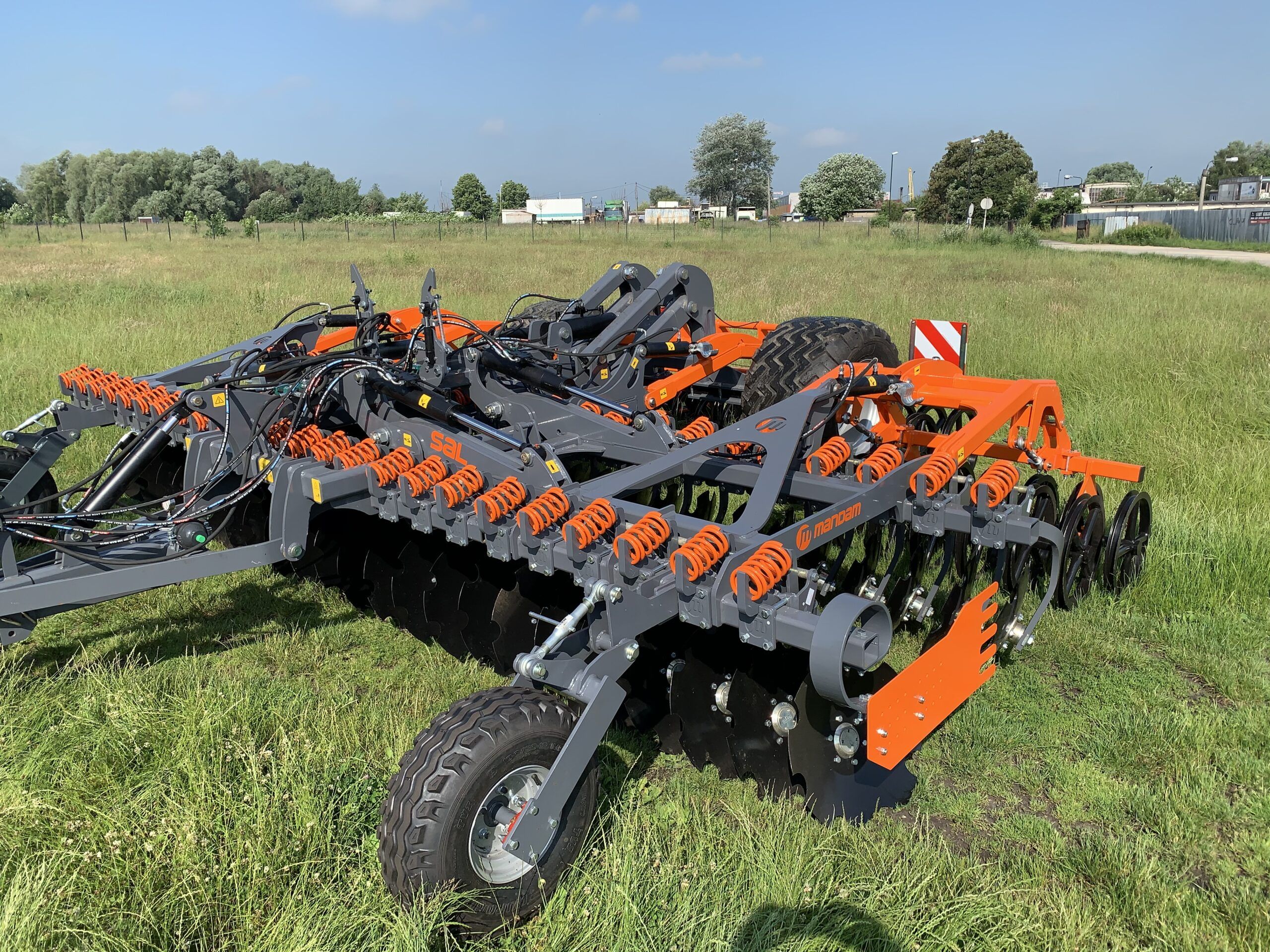 Opatentowany system zabezpieczenia talerzy w bronach talerzowych SAL wprowadziła firma MANDAM. Jest to nowe rozwiązanie dużo bardziej odporne na trudne warunki glebowe albo duże zakamienienie aniżeli zabezpieczenie gumowe, gdyż działa ono na zasadzie sprężyny ściskanej! Zabezpieczenie sprężynowe działa z siłą wzbudzenia 230 kg na talerz! Nawet na twardych i zbitych glebach głębokość pracy jest dokładnie utrzymywana. Podobne rozwiązania posiadają agregaty uprawowe firmy Lemken.
