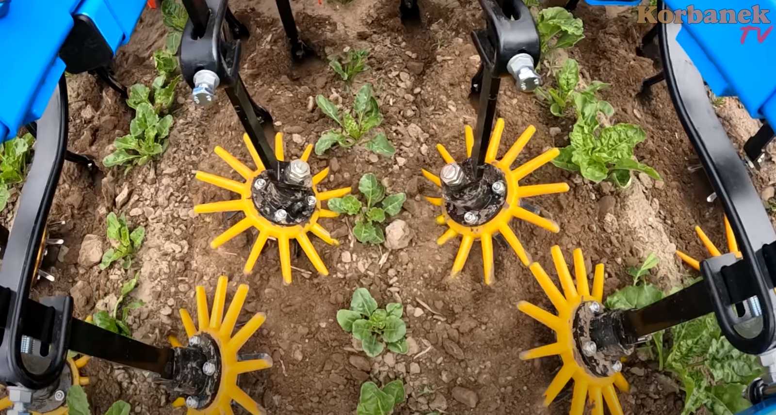 - Gwiazdy pielące na sekcjach, średnica 290 mm (stosowane, gdy uprawa główna jest wystarczająco rozwinięta, aby móc wyrywać z korzeniami chwasty w rzędzie),