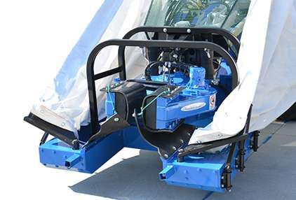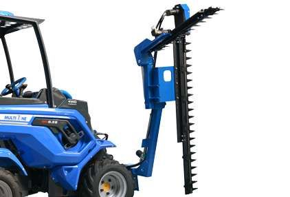 - Nożyce do żywopłotu z podwójnym ostrzemNożyce do żywopłotu z podwójnym ostrzem, napędzane hydraulicznie, umożliwiają jednoczesne przycinanie górnej i bocznej części rzędów winorośli i dużych roślin. Każdy zespół ramy i noża można niezależnie regulować, a wysięgnik MultiOne zapewnia dodatkową elastyczność i kontrolę. Nachylenie poziomej listwy tnącej można regulować ręcznie, a na wyposażeniu znajduje się siłownik elektryczny, który pozwala na jednoczesną regulację nachylenia obu listew tnących bezpośrednio z siedzenia kierowcy.