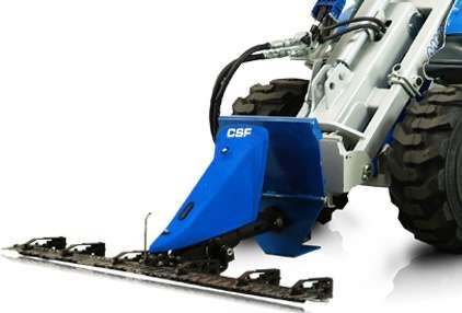 - Pług śnieżnyDoskonałe narzędzie do szybkiego usuwania śniegu z chodników i podjazdów. Wyposażony w system amortyzacji, który pozwala ostrzu wyskoczyć do przodu w przypadku napotkania przeszkody, oszczędzając zużycie ostrza i MultiOne. Jest wyposażony w plastikową krawędź, którą po zużyciu można odwrócić lub wymienić. Ostrze można wygodnie odchylać hydraulicznie o 30 ° zarówno w prawo, jak i w lewo, wygodnie z siedzenia kierowcy. Jest wyposażony we wsporniki, które można wysunąć, gdy osprzęt nie jest używany. Może być również używany do przesuwania lekkich materiałów, takich jak ziarna czy trociny.