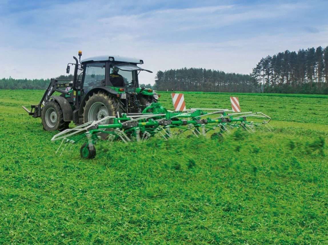 Na filmiku zaprezentowana jest praca zgrabiarek i przetrząsaczy