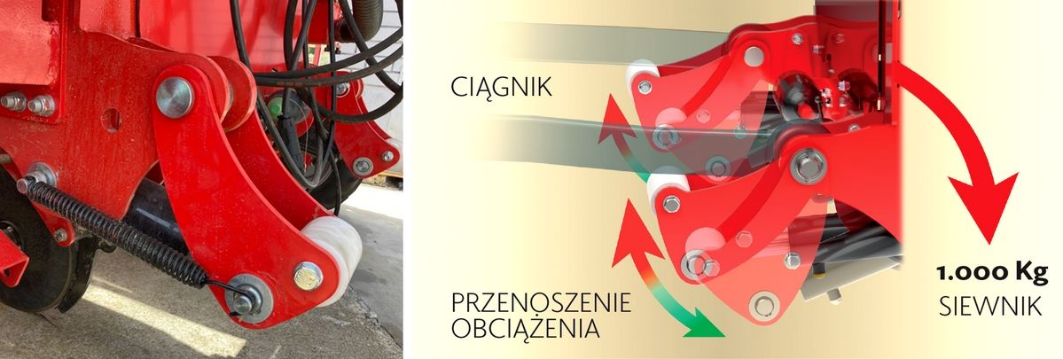 Do 350kg całkowitego docisku na sekcję wysiewającą umożliwia pracę w najtrudniejszych warunkach.